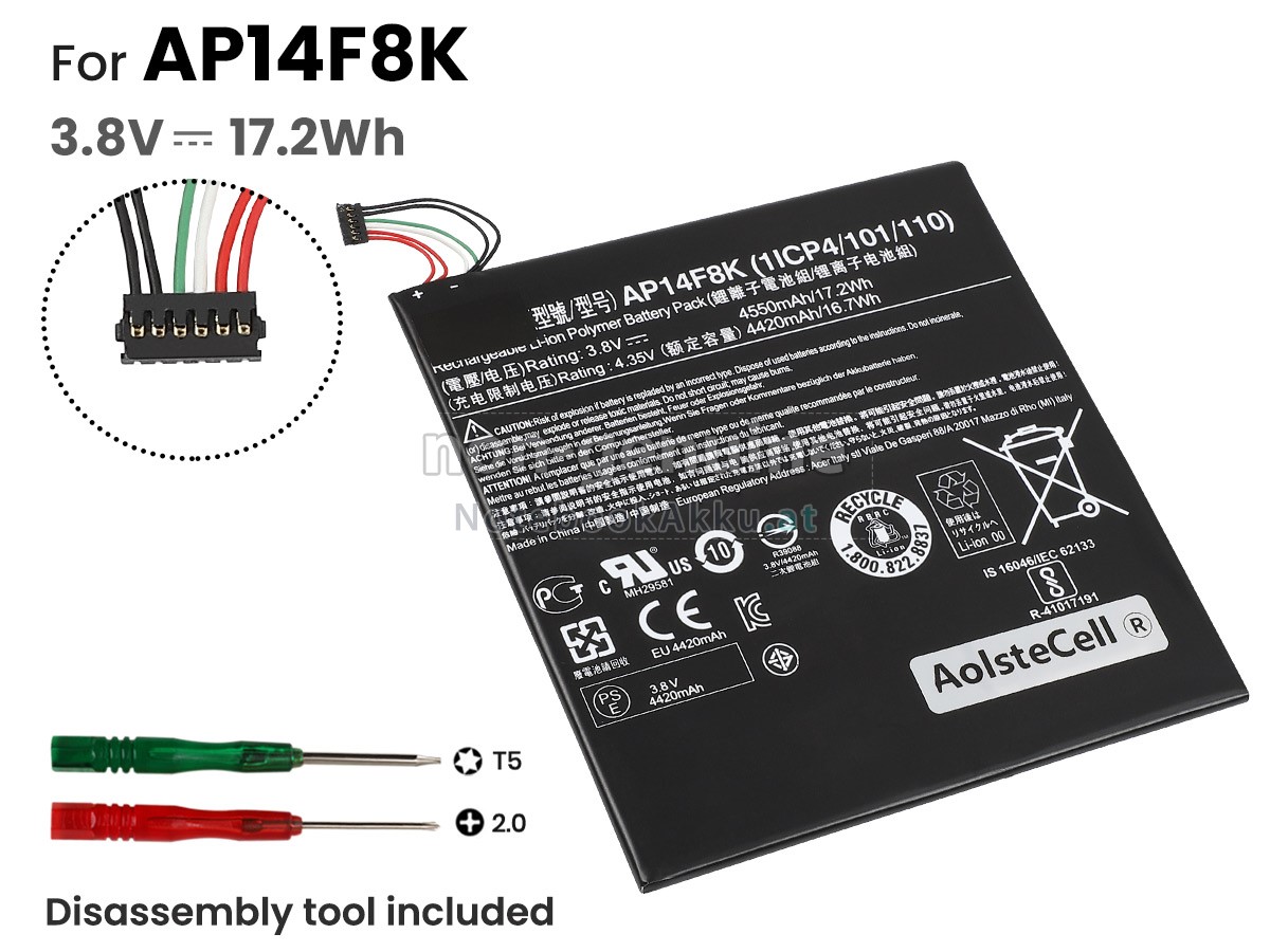 2 Vergleichen Sie die Spannung und das Fassungsvermögen Ihrer Akku für Acer AP14E8K mit unserer, dann schauen Sie das Bild und prüfen Sie, ob die Schittstelle und Form der neuen Akku gleich mit der alten Batterie ist.