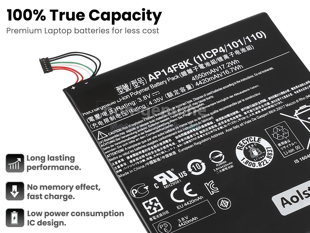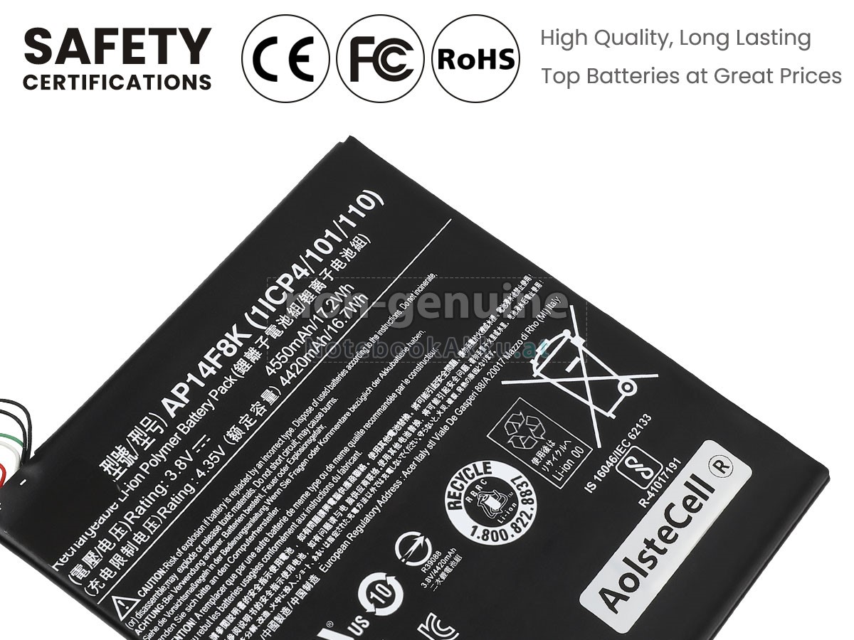 Jede unserer Akkus für Acer AP14E8K ist vollständig kompatibel mit dem Originalhersteller. Außerdem besteht sie eine Serie Sicherheitszertifikaten wie OVE,CE,UL,ROHS,ISO9001 / 9002. Vor dem Warenausgang überprüfen unsere Techniker sie streng, um Ihre Sicherheit so viel wie möglich zu garantieren. Vor der Versendung hüllen wir AP14E8K-Batterie mit einigen Schichten Luftpolsterfolien ein, um die Verletzung bei der Lieferung zu vermeiden.
