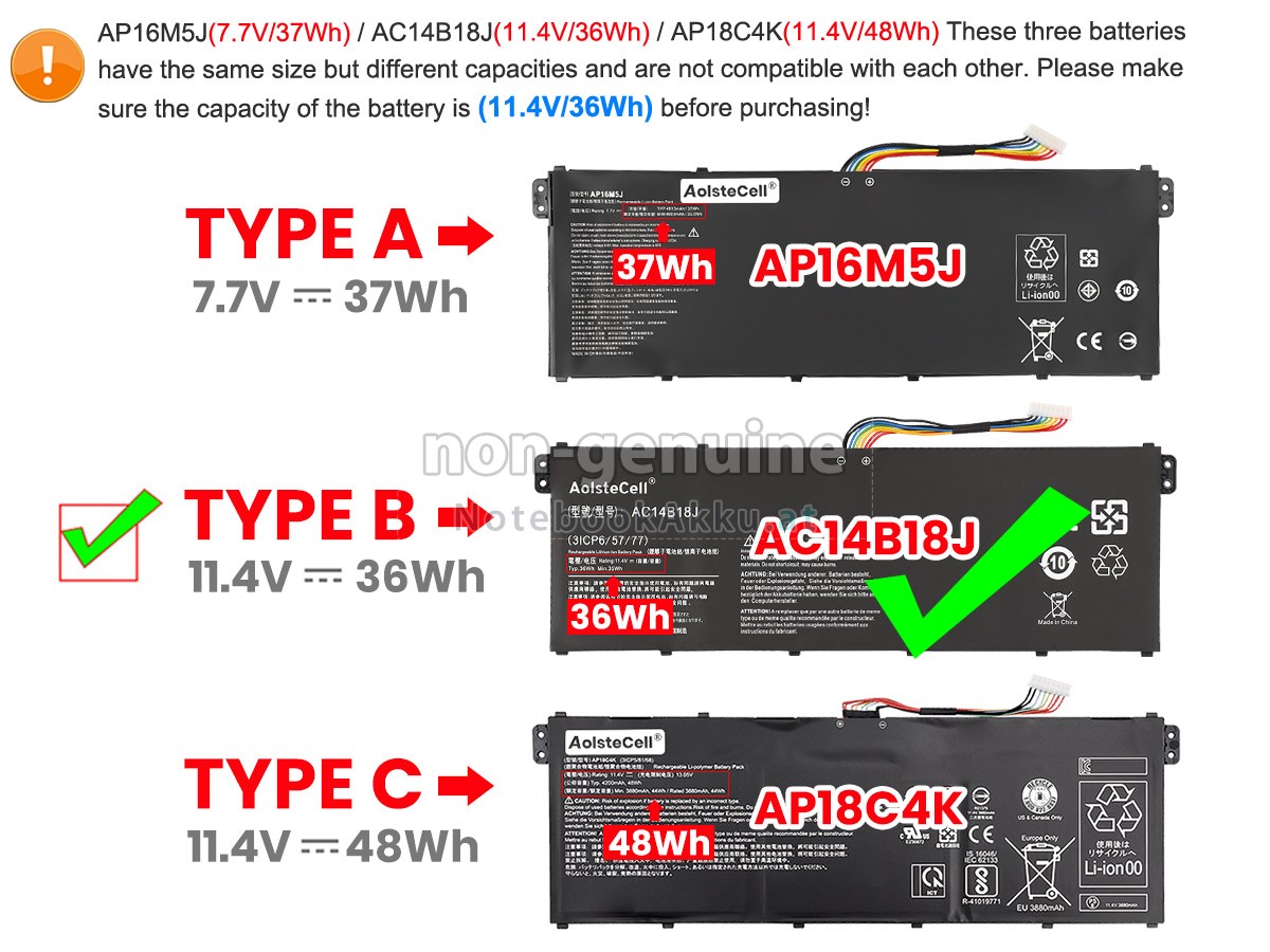 Only fit for the battery model: AC14B18J or AC14B13J. Before placing an order please check your old battery first. - SKUNAT2125