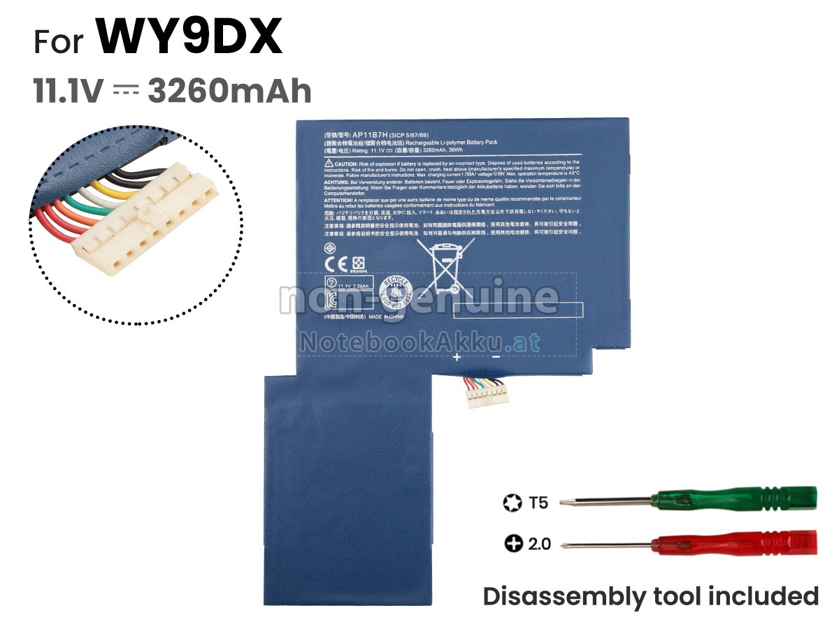 2 Vergleichen Sie die Spannung und das Fassungsvermögen Ihrer Akku für Acer Iconia Tab W500P mit unserer, dann schauen Sie das Bild und prüfen Sie, ob die Schittstelle und Form der neuen Akku gleich mit der alten Batterie ist.