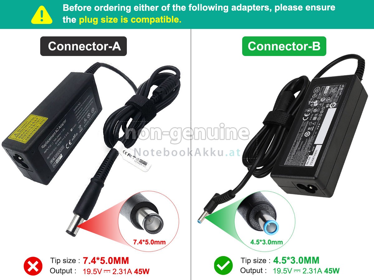 2 Vergewissern Sie sich, dass der Schnittstellentyp und die Größe des Geräts zum HP HSTNN-CA40 Netzteil passen.