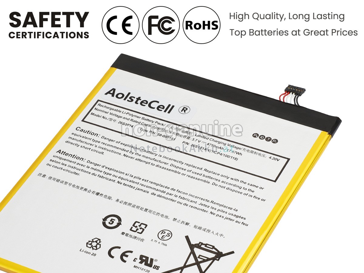 Jede unserer Akkus für Amazon SX034QT ist vollständig kompatibel mit dem Originalhersteller. Außerdem besteht sie eine Serie Sicherheitszertifikaten wie OVE,CE,UL,ROHS,ISO9001 / 9002. Vor dem Warenausgang überprüfen unsere Techniker sie streng, um Ihre Sicherheit so viel wie möglich zu garantieren. Vor der Versendung hüllen wir SX034QT-Batterie mit einigen Schichten Luftpolsterfolien ein, um die Verletzung bei der Lieferung zu vermeiden.