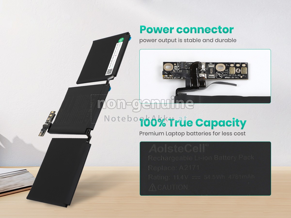 Ersatzakku für Apple A2171 in der Webseite NotebookAkku.at zählt zu besten Wahlen. Wir bieten Ihnen mit günstigerem Preis die hochwertigere Akku des Notebooks. Apple A2171 Akku, der aus hochwertigem Li-Polymer von Samsung, Panasonic und LG hergestellt wird, kann für mindestens 600 Zyklen aufgeladen / entladen werden, was Ihnen ein hervorragendes Erlebnis zur anhaltenden Verwendung bietet.