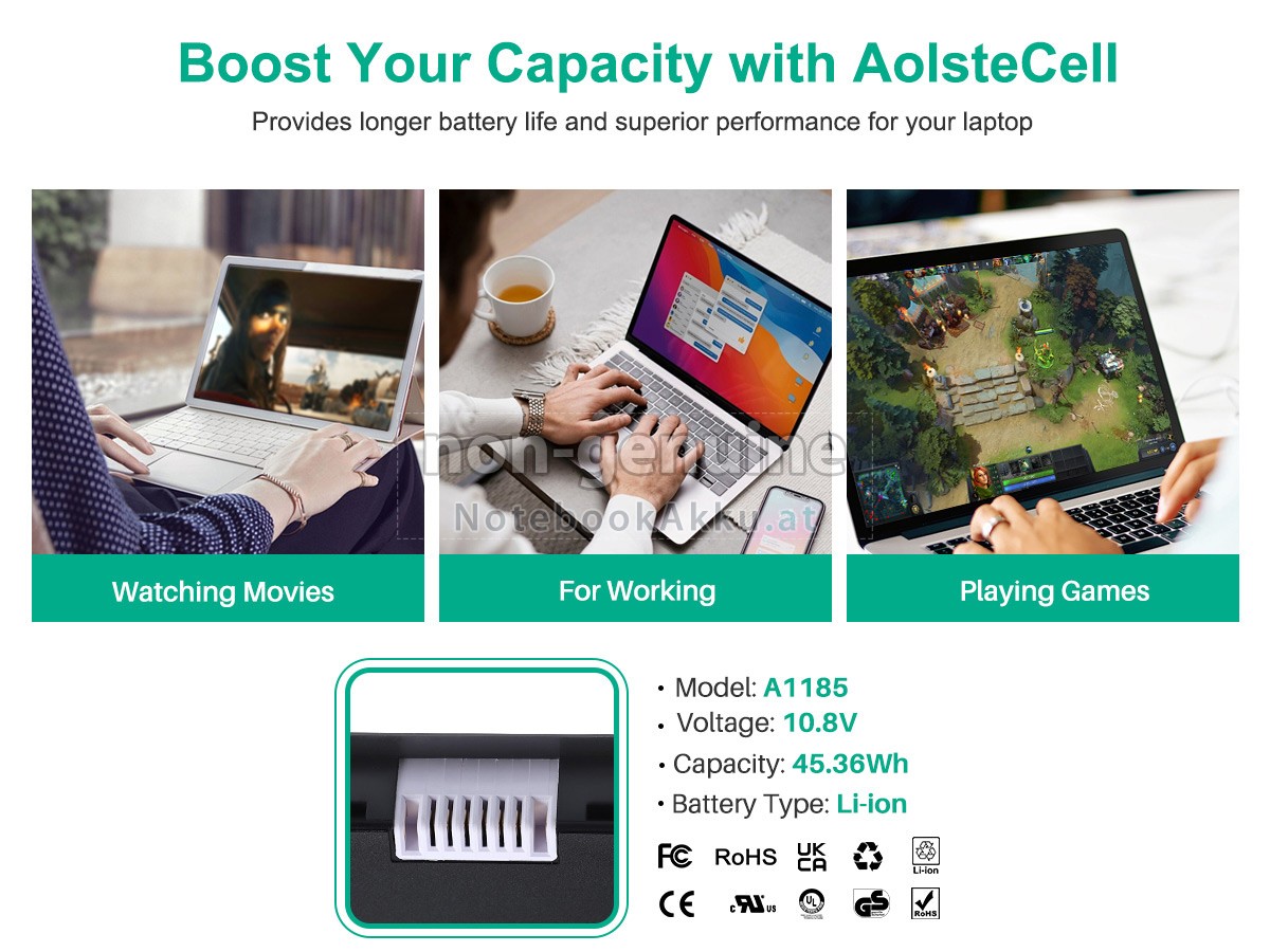 Der Experte für Akku des Notebooks! Wir haben über 10-jährige Erfahrung zum Verkauf der Akkus des Notebooks, deshalb ist unser Verhältnis zu Hersteller und Logistikanbieter gut. Sie können mit niedrigstem Preis aber die hochwertigste Akku für Apple MA566FE/A erwerben. Wir halten den Kunden für den Brennpunkt und kümmern sich nicht nur Batterie, sondern auch die Service und das Vertrauen. Darüber hinaus bieten wir Ihnen 30-tägige Rückerstattung und 1-jährige Garantie. Kontaktieren Sie uns, wenn Sie irgendwelche Probleme haben. Wir freuen uns darüber, Ihre Probleme zu lösen. Kaufen Sie neue Apple MA566FE/A Akku und fangen Sie erneut Ihre Reise des Apple Notebooks an!