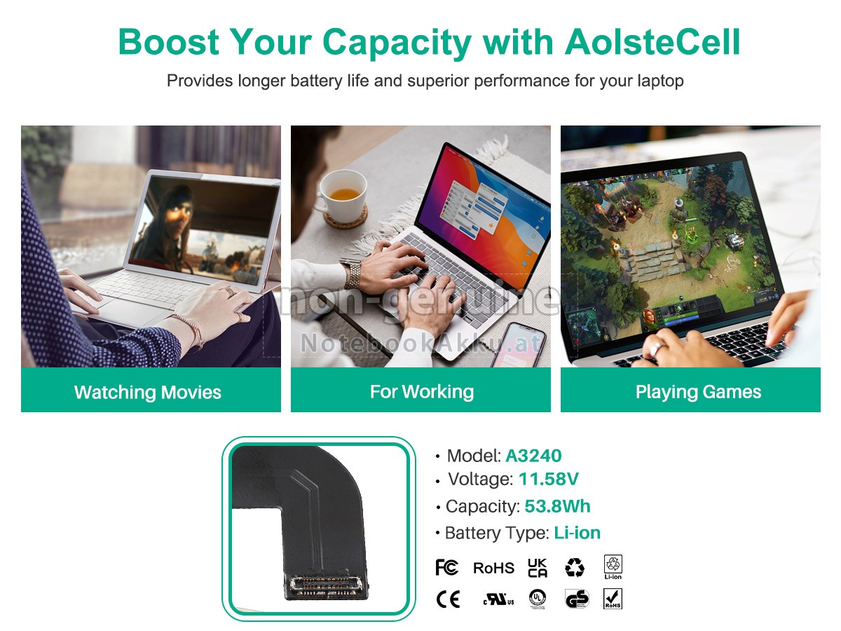 2 Vergleichen Sie die Spannung und das Fassungsvermögen Ihrer Akku für Apple MacBook Air 2025 M4 mit unserer, dann schauen Sie das Bild und prüfen Sie, ob die Schittstelle und Form der neuen Akku gleich mit der alten Batterie ist.