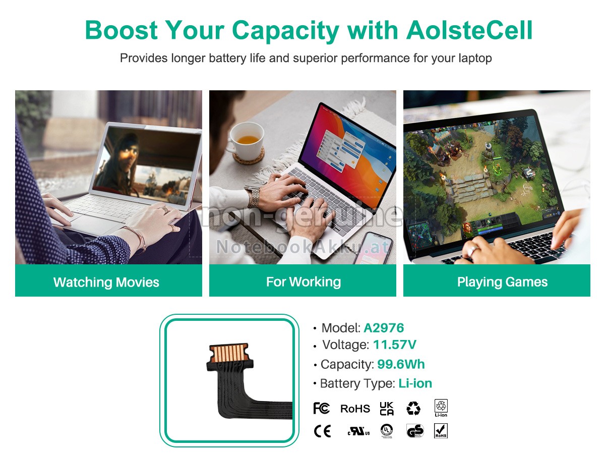 2 Vergleichen Sie die Spannung und das Fassungsvermögen Ihrer Akku für Apple MacBook Pro 16-inch M3 MAX Late 2023 MRW33LL/A mit unserer, dann schauen Sie das Bild und prüfen Sie, ob die Schittstelle und Form der neuen Akku gleich mit der alten Batterie ist.
