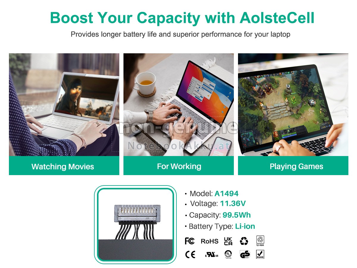Ersatzakku für Apple MacBook Pro Core I7 2.5GHZ 15.4 inch Retina A1398(EMC 2881) in der Webseite NotebookAkku.at zählt zu besten Wahlen. Wir bieten Ihnen mit günstigerem Preis die hochwertigere Akku des Notebooks. Apple MacBook Pro Core I7 2.5GHZ 15.4 inch Retina A1398(EMC 2881) Akku, der aus hochwertigem Li-Polymer von Samsung, Panasonic und LG hergestellt wird, kann für mindestens 600 Zyklen aufgeladen / entladen werden, was Ihnen ein hervorragendes Erlebnis zur anhaltenden Verwendung bietet.