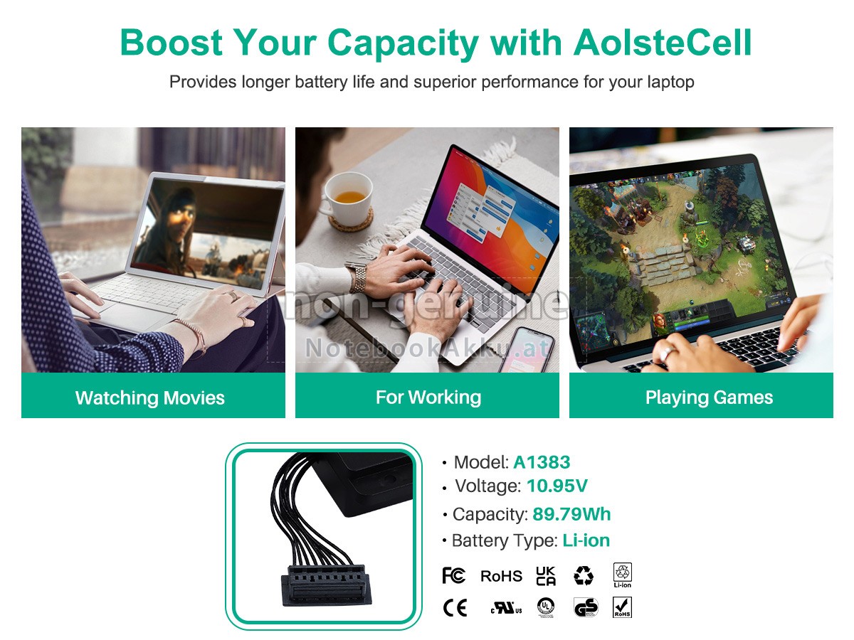 Ersatzakku für Apple MC725LL/A* in der Webseite NotebookAkku.at zählt zu besten Wahlen. Wir bieten Ihnen mit günstigerem Preis die hochwertigere Akku des Notebooks. Apple MC725LL/A* Akku, der aus hochwertigem Li-Polymer von Samsung, Panasonic und LG hergestellt wird, kann für mindestens 600 Zyklen aufgeladen / entladen werden, was Ihnen ein hervorragendes Erlebnis zur anhaltenden Verwendung bietet.