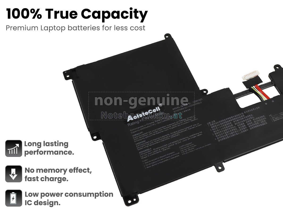 Ersatzakku für Asus 0B200-02400100 in der Webseite NotebookAkku.at zählt zu besten Wahlen. Wir bieten Ihnen mit günstigerem Preis die hochwertigere Akku des Notebooks. Asus 0B200-02400100 Akku, der aus hochwertigem Li-Polymer von Samsung, Panasonic und LG hergestellt wird, kann für mindestens 600 Zyklen aufgeladen / entladen werden, was Ihnen ein hervorragendes Erlebnis zur anhaltenden Verwendung bietet.
