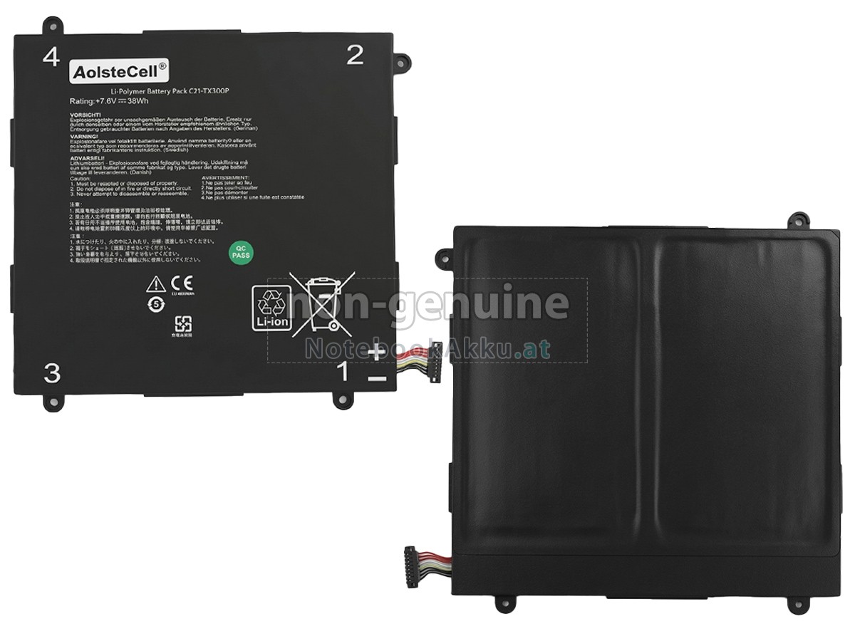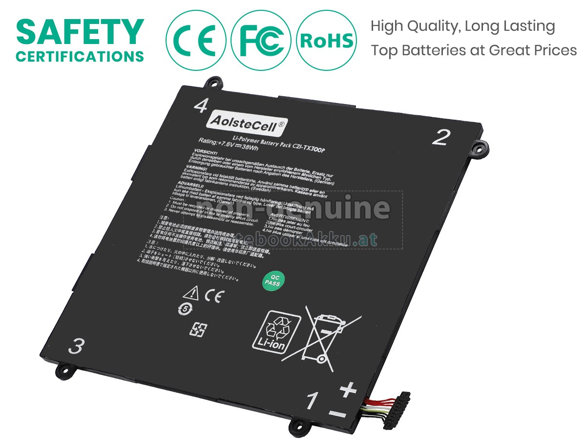 Ersatzakku für Asus C21-TX300P in der Webseite NotebookAkku.at zählt zu besten Wahlen. Wir bieten Ihnen mit günstigerem Preis die hochwertigere Akku des Notebooks. Asus C21-TX300P Akku, der aus hochwertigem Li-Polymer von Samsung, Panasonic und LG hergestellt wird, kann für mindestens 600 Zyklen aufgeladen / entladen werden, was Ihnen ein hervorragendes Erlebnis zur anhaltenden Verwendung bietet.