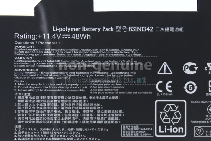 Jede unserer Akkus für Asus Chromebook C200MA ist vollständig kompatibel mit dem Originalhersteller. Außerdem besteht sie eine Serie Sicherheitszertifikaten wie OVE,CE,UL,ROHS,ISO9001 / 9002. Vor dem Warenausgang überprüfen unsere Techniker sie streng, um Ihre Sicherheit so viel wie möglich zu garantieren. Vor der Versendung hüllen wir Asus Chromebook C200MA Batterie mit einigen Schichten Luftpolsterfolien ein, um die Verletzung bei der Lieferung zu vermeiden.