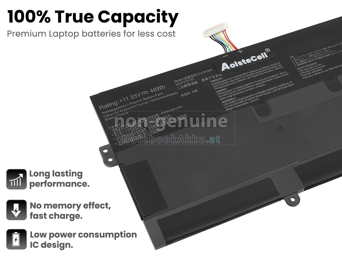 2 Vergleichen Sie die Spannung und das Fassungsvermögen Ihrer Akku für Asus Chromebook Flip C434TA-DS584 mit unserer, dann schauen Sie das Bild und prüfen Sie, ob die Schittstelle und Form der neuen Akku gleich mit der alten Batterie ist.