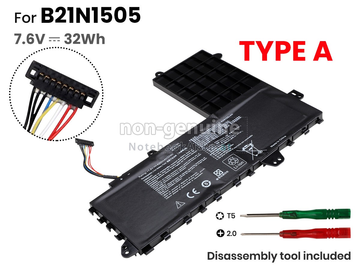 2 Vergleichen Sie die Spannung und das Fassungsvermögen Ihrer Akku für Asus E402SA mit unserer, dann schauen Sie das Bild und prüfen Sie, ob die Schittstelle und Form der neuen Akku gleich mit der alten Batterie ist.