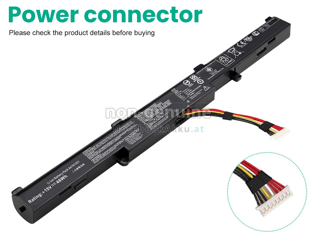 2 Vergleichen Sie die Spannung und das Fassungsvermögen Ihrer Akku für Asus GL752VW-T4428T-BE mit unserer, dann schauen Sie das Bild und prüfen Sie, ob die Schittstelle und Form der neuen Akku gleich mit der alten Batterie ist.