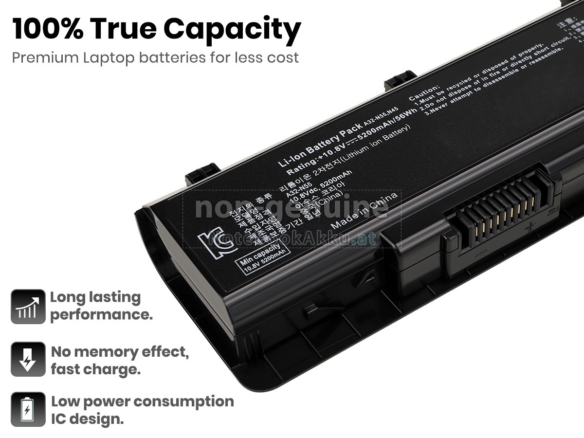 Ersatzakku für Asus N55SF-S2151V in der Webseite NotebookAkku.at zählt zu besten Wahlen. Wir bieten Ihnen mit günstigerem Preis die hochwertigere Akku des Notebooks. Asus N55SF-S2151V Akku, der aus hochwertigem Li-ion von Samsung, Panasonic und LG hergestellt wird, kann für mindestens 600 Zyklen aufgeladen / entladen werden, was Ihnen ein hervorragendes Erlebnis zur anhaltenden Verwendung bietet.