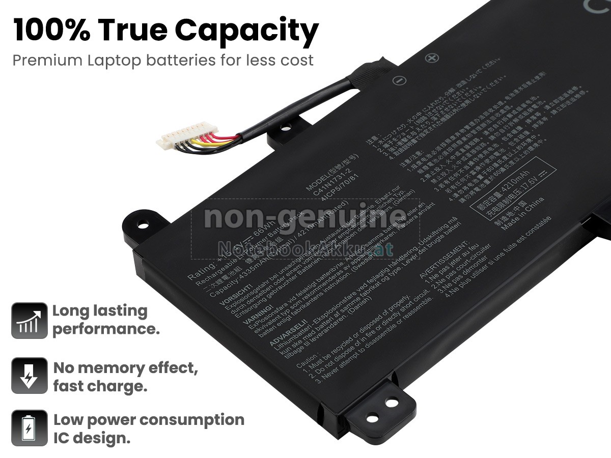 Ersatzakku für Asus Rog STRIX G G731GW-EV124T in der Webseite NotebookAkku.at zählt zu besten Wahlen. Wir bieten Ihnen mit günstigerem Preis die hochwertigere Akku des Notebooks. Asus Rog STRIX G G731GW-EV124T Akku, der aus hochwertigem Li-Polymer von Samsung, Panasonic und LG hergestellt wird, kann für mindestens 600 Zyklen aufgeladen / entladen werden, was Ihnen ein hervorragendes Erlebnis zur anhaltenden Verwendung bietet.