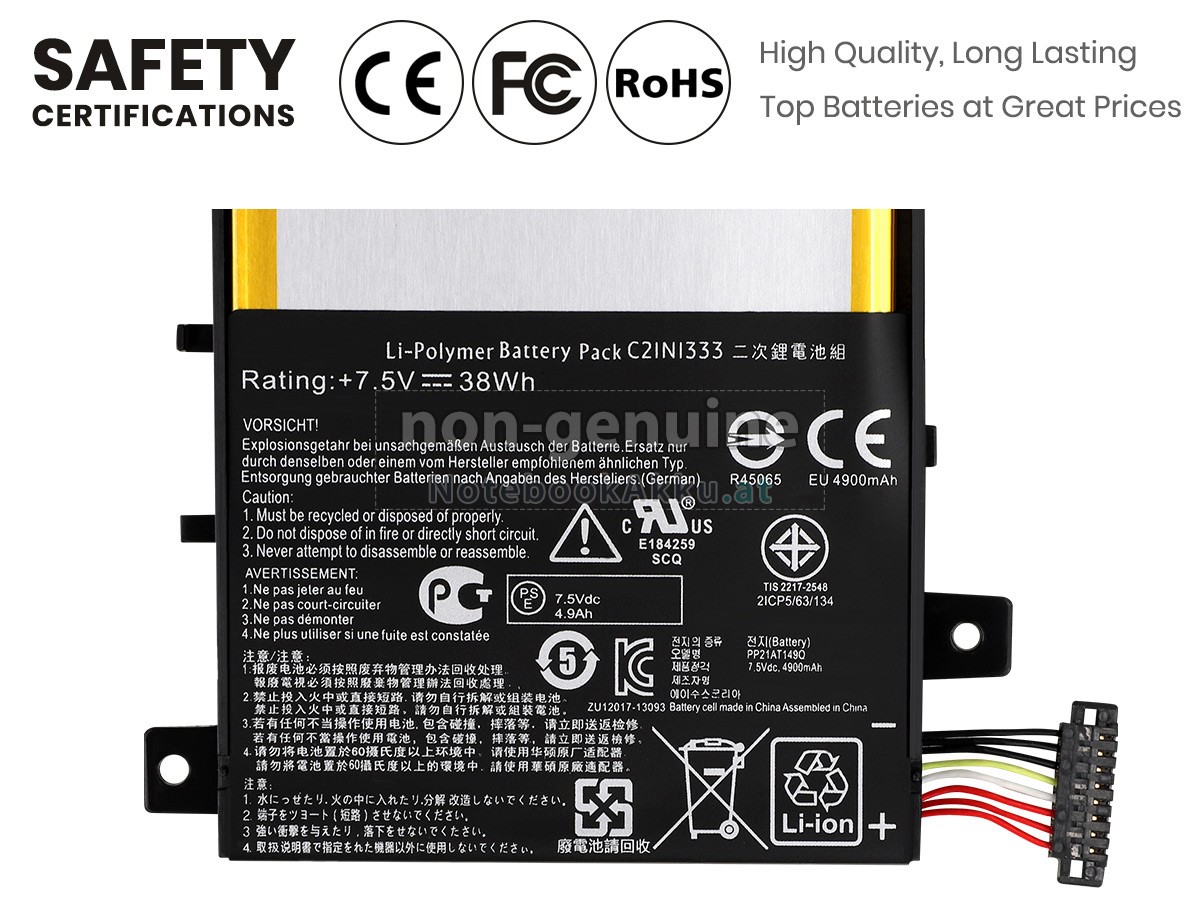 Jede unserer Akkus für Asus Transformer Flip TP550LD ist vollständig kompatibel mit dem Originalhersteller. Außerdem besteht sie eine Serie Sicherheitszertifikaten wie OVE,CE,UL,ROHS,ISO9001 / 9002. Vor dem Warenausgang überprüfen unsere Techniker sie streng, um Ihre Sicherheit so viel wie möglich zu garantieren. Vor der Versendung hüllen wir Asus Transformer Flip TP550LD Batterie mit einigen Schichten Luftpolsterfolien ein, um die Verletzung bei der Lieferung zu vermeiden.