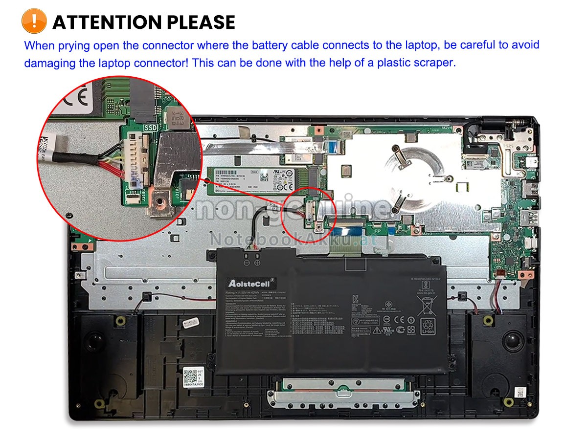 2 Vergleichen Sie die Spannung und das Fassungsvermögen Ihrer Akku für Asus VivoBook 14 E410MA-EK1830W mit unserer, dann schauen Sie das Bild und prüfen Sie, ob die Schittstelle und Form der neuen Akku gleich mit der alten Batterie ist.