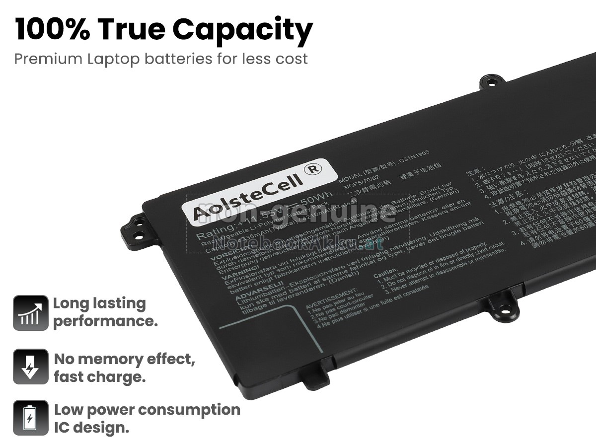 2 Vergleichen Sie die Spannung und das Fassungsvermögen Ihrer Akku für Asus VivoBook M3402QA-KM066 mit unserer, dann schauen Sie das Bild und prüfen Sie, ob die Schittstelle und Form der neuen Akku gleich mit der alten Batterie ist.