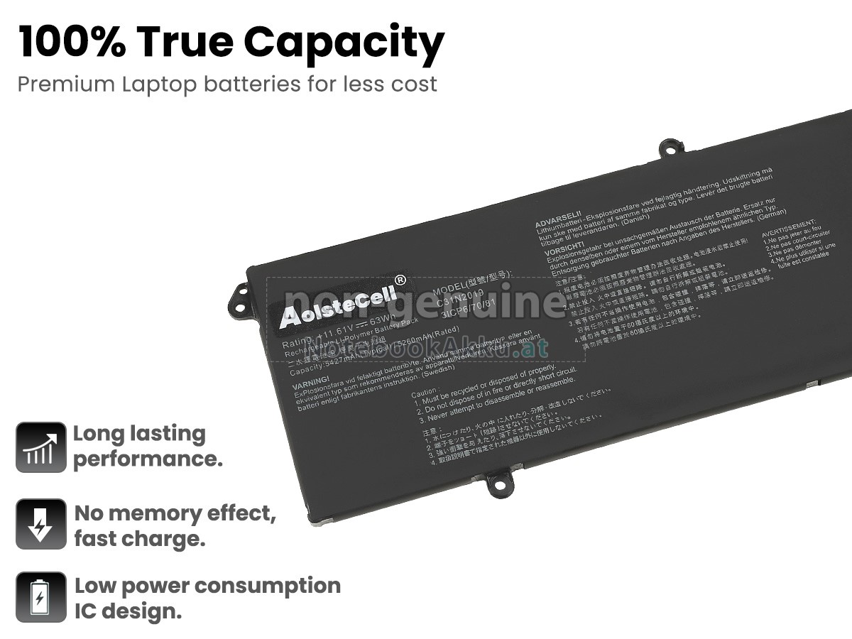 Ersatzakku für Asus VivoBook Pro 14 OLED S3401QA-KM127W in der Webseite NotebookAkku.at zählt zu besten Wahlen. Wir bieten Ihnen mit günstigerem Preis die hochwertigere Akku des Notebooks. Asus VivoBook Pro 14 OLED S3401QA-KM127W Akku, der aus hochwertigem Li-Polymer von Samsung, Panasonic und LG hergestellt wird, kann für mindestens 600 Zyklen aufgeladen / entladen werden, was Ihnen ein hervorragendes Erlebnis zur anhaltenden Verwendung bietet.