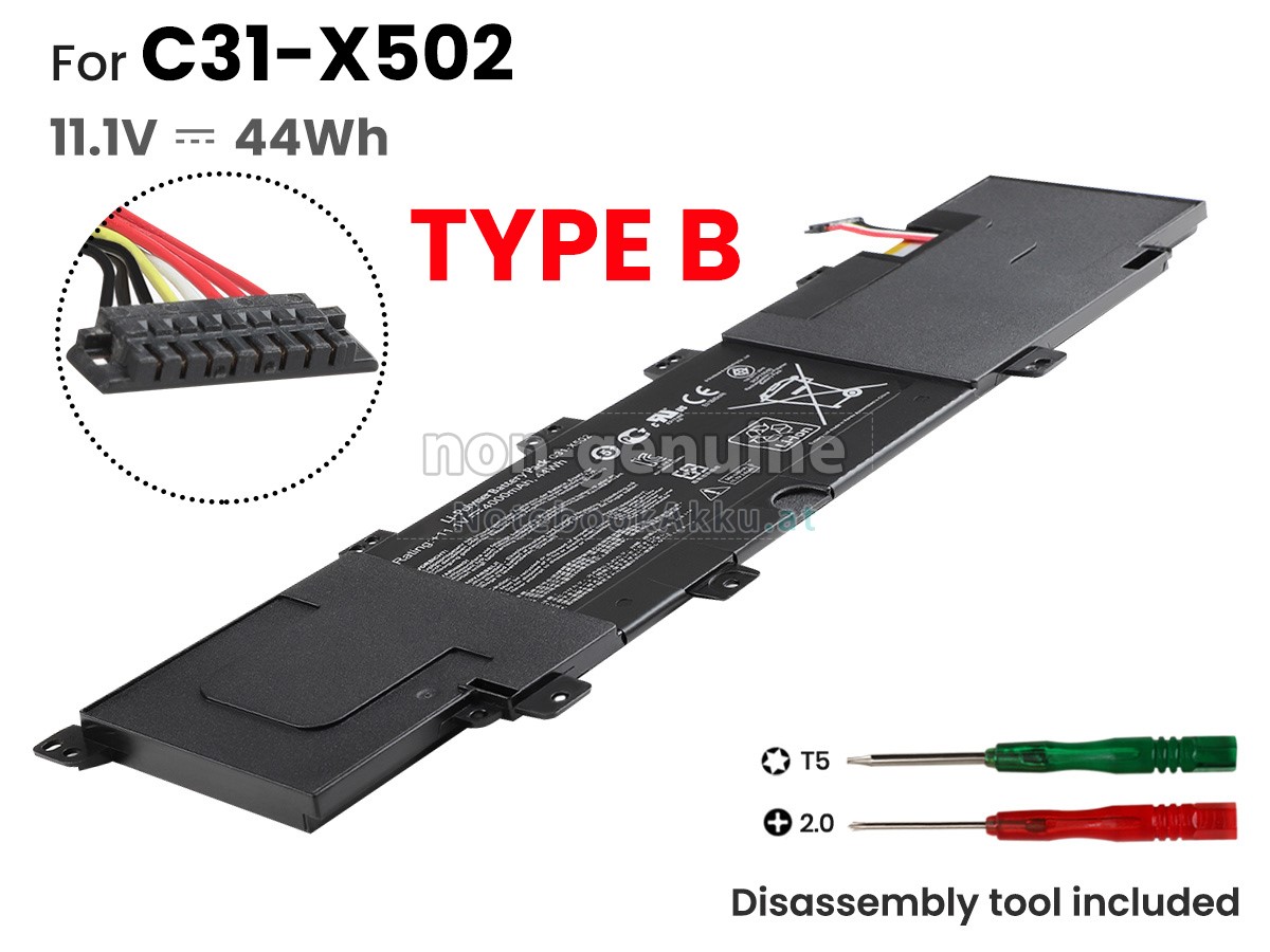 2 Vergleichen Sie die Spannung und das Fassungsvermögen Ihrer Akku für Asus VivoBook S500 mit unserer, dann schauen Sie das Bild und prüfen Sie, ob die Schittstelle und Form der neuen Akku gleich mit der alten Batterie ist.