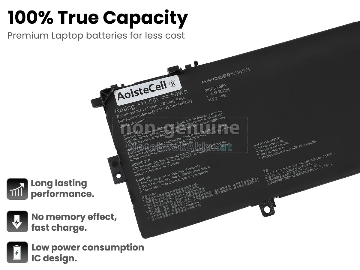 Der Experte für Akku des Notebooks! Wir haben über 10-jährige Erfahrung zum Verkauf der Akkus des Notebooks, deshalb ist unser Verhältnis zu Hersteller und Logistikanbieter gut. Sie können mit niedrigstem Preis aber die hochwertigste Akku für Asus ZenBook 13 UX331UAL-EG040R erwerben. Wir halten den Kunden für den Brennpunkt und kümmern sich nicht nur Batterie, sondern auch die Service und das Vertrauen. Darüber hinaus bieten wir Ihnen 30-tägige Rückerstattung und 1-jährige Garantie. Kontaktieren Sie uns, wenn Sie irgendwelche Probleme haben. Wir freuen uns darüber, Ihre Probleme zu lösen. Kaufen Sie neue Asus ZenBook 13 UX331UAL-EG040R Akku und fangen Sie erneut Ihre Reise des Asus Notebooks an!