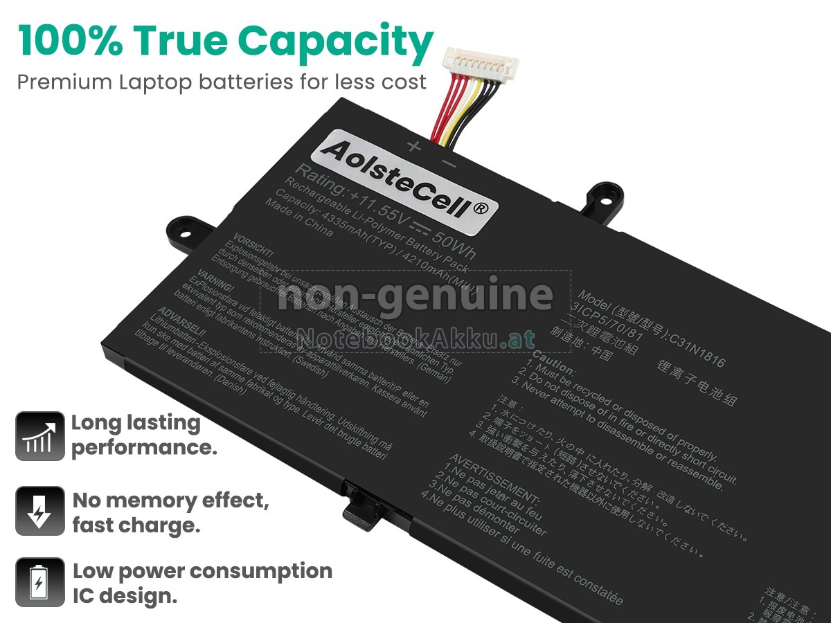 Ersatzakku für Asus ZenBook Flip UX362FA in der Webseite NotebookAkku.at zählt zu besten Wahlen. Wir bieten Ihnen mit günstigerem Preis die hochwertigere Akku des Notebooks. Asus ZenBook Flip UX362FA Akku, der aus hochwertigem Li-Polymer von Samsung, Panasonic und LG hergestellt wird, kann für mindestens 600 Zyklen aufgeladen / entladen werden, was Ihnen ein hervorragendes Erlebnis zur anhaltenden Verwendung bietet.