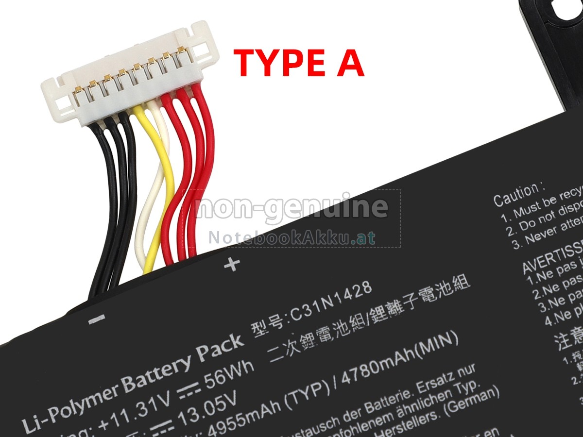 2 Vergleichen Sie die Spannung und das Fassungsvermögen Ihrer Akku für Asus ZenBook UX306UA-VB72 mit unserer, dann schauen Sie das Bild und prüfen Sie, ob die Schittstelle und Form der neuen Akku gleich mit der alten Batterie ist.