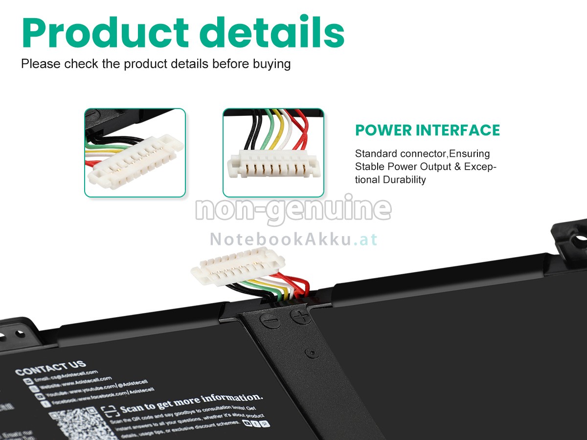 2 Vergleichen Sie die Spannung und das Fassungsvermögen Ihrer Akku für Asus ZenBook UX431FA-AN001T mit unserer, dann schauen Sie das Bild und prüfen Sie, ob die Schittstelle und Form der neuen Akku gleich mit der alten Batterie ist.