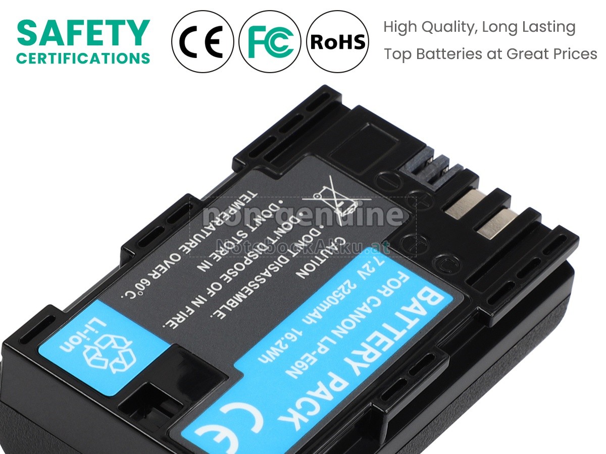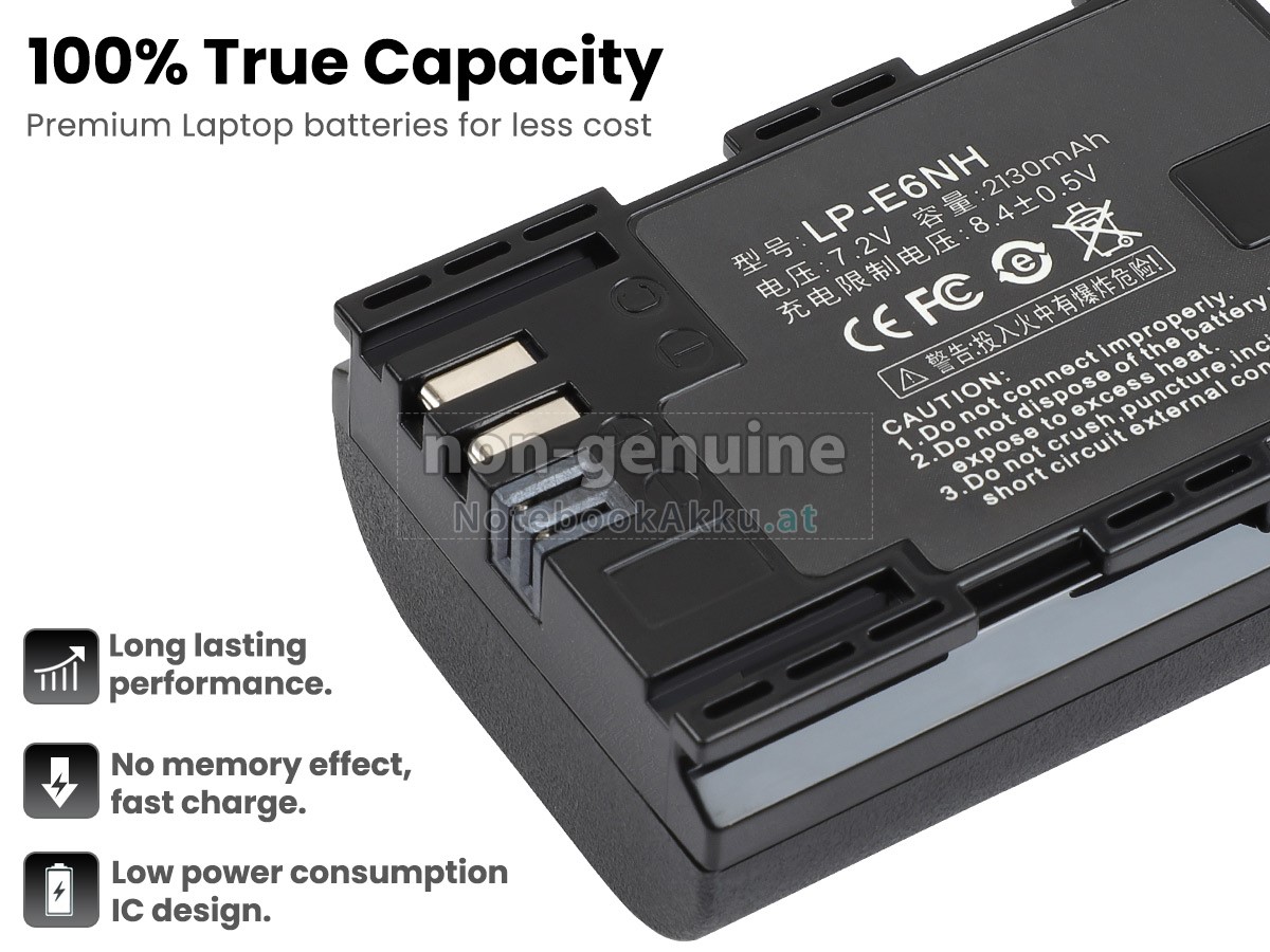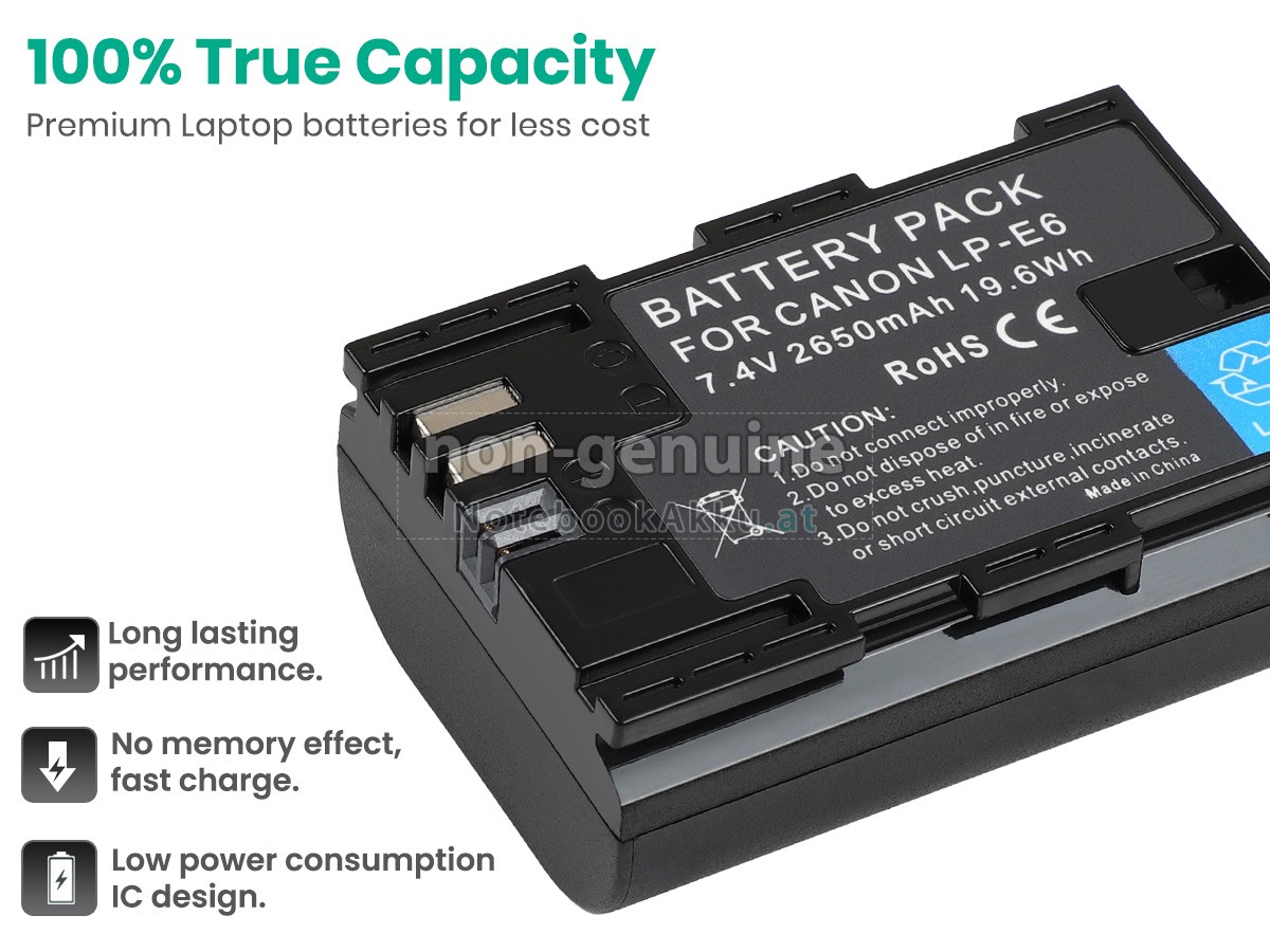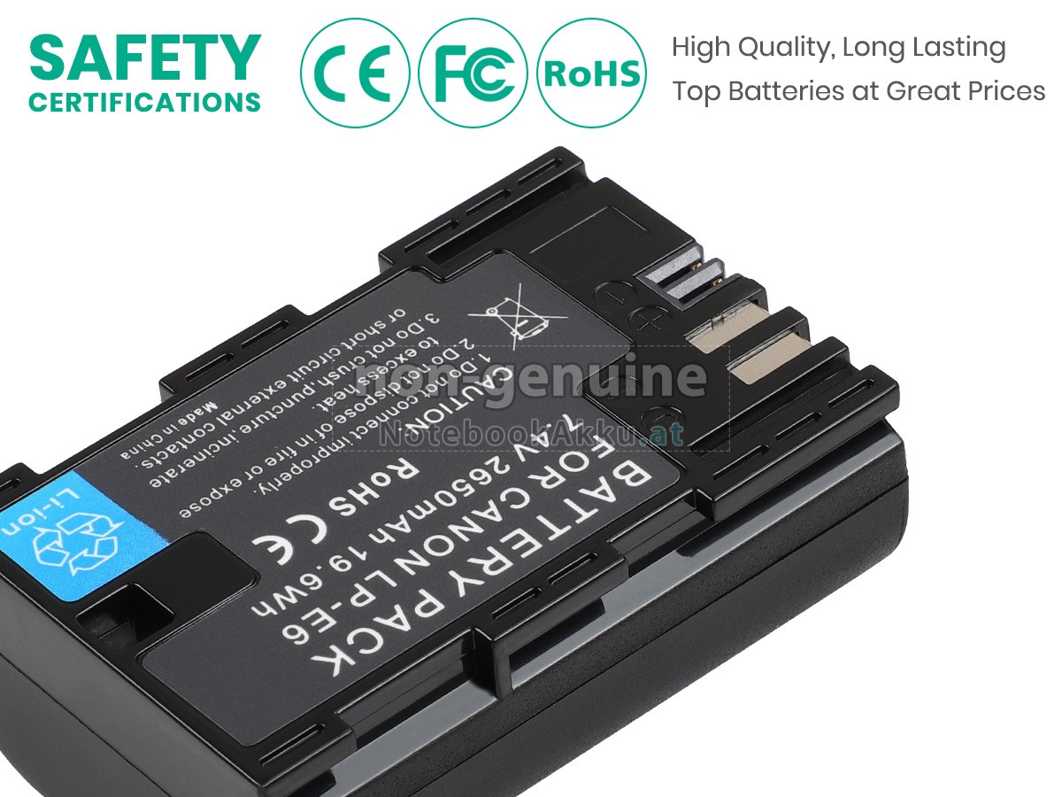 Ersatzakku für Canon LP-E6N in der Webseite NotebookAkku.at zählt zu besten Wahlen. Wir bieten Ihnen mit günstigerem Preis die hochwertigere Akku. Canon LP-E6N Akku, der aus hochwertigem Li-ion von Samsung, Panasonic und LG hergestellt wird, kann für mindestens 600 Zyklen aufgeladen / entladen werden, was Ihnen ein hervorragendes Erlebnis zur anhaltenden Verwendung bietet.