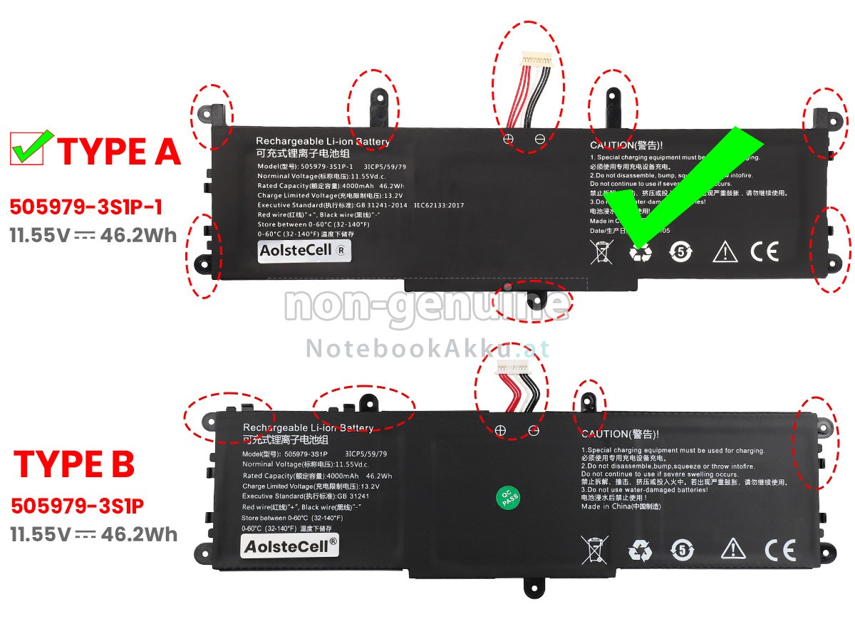 2 Vergleichen Sie die Spannung und das Fassungsvermögen Ihrer Akku für CHUWI COREBOOK X CW1529 mit unserer, dann schauen Sie das Bild und prüfen Sie, ob die Schittstelle und Form der neuen Akku gleich mit der alten Batterie ist.