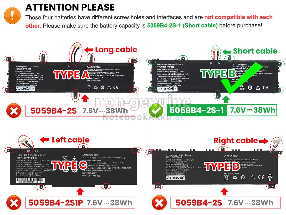 2 Vergleichen Sie die Spannung und das Fassungsvermögen Ihrer Akku für CHUWI GEMIBOOK 13.3 CWI528 mit unserer, dann schauen Sie das Bild und prüfen Sie, ob die Schittstelle und Form der neuen Akku gleich mit der alten Batterie ist.