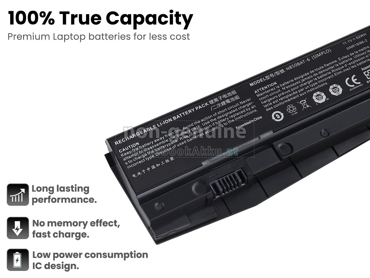 Ersatzakku für Clevo 6-87-N850S-4U41 in der Webseite NotebookAkku.at zählt zu besten Wahlen. Wir bieten Ihnen mit günstigerem Preis die hochwertigere Akku des Notebooks. Clevo 6-87-N850S-4U41 Akku, der aus hochwertigem Li-ion von Samsung, Panasonic und LG hergestellt wird, kann für mindestens 600 Zyklen aufgeladen / entladen werden, was Ihnen ein hervorragendes Erlebnis zur anhaltenden Verwendung bietet.