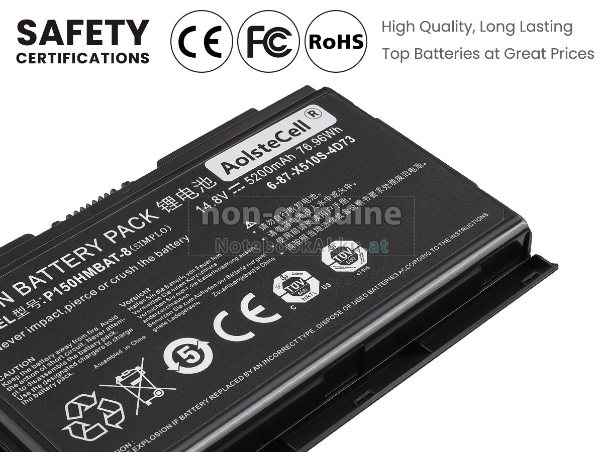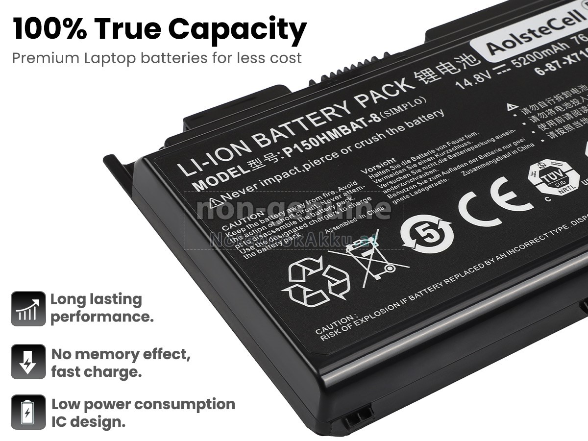 Ersatzakku für Clevo P150HMBAT-8(X510S) in der Webseite NotebookAkku.at zählt zu besten Wahlen. Wir bieten Ihnen mit günstigerem Preis die hochwertigere Akku des Notebooks. Clevo P150HMBAT-8(X510S) Akku, der aus hochwertigem Li-ion von Samsung, Panasonic und LG hergestellt wird, kann für mindestens 600 Zyklen aufgeladen / entladen werden, was Ihnen ein hervorragendes Erlebnis zur anhaltenden Verwendung bietet.