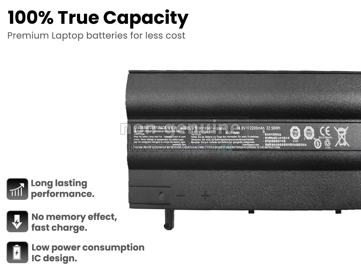 Der Experte für Akku des Notebooks! Wir haben über 10-jährige Erfahrung zum Verkauf der Akkus des Notebooks, deshalb ist unser Verhältnis zu Hersteller und Logistikanbieter gut. Sie können mit niedrigstem Preis aber die hochwertigste Akku für Clevo W310 erwerben. Wir halten den Kunden für den Brennpunkt und kümmern sich nicht nur Batterie, sondern auch die Service und das Vertrauen. Darüber hinaus bieten wir Ihnen 30-tägige Rückerstattung und 1-jährige Garantie. Kontaktieren Sie uns, wenn Sie irgendwelche Probleme haben. Wir freuen uns darüber, Ihre Probleme zu lösen. Kaufen Sie neue Clevo W310 Akku und fangen Sie erneut Ihre Reise des Clevo Notebooks an!