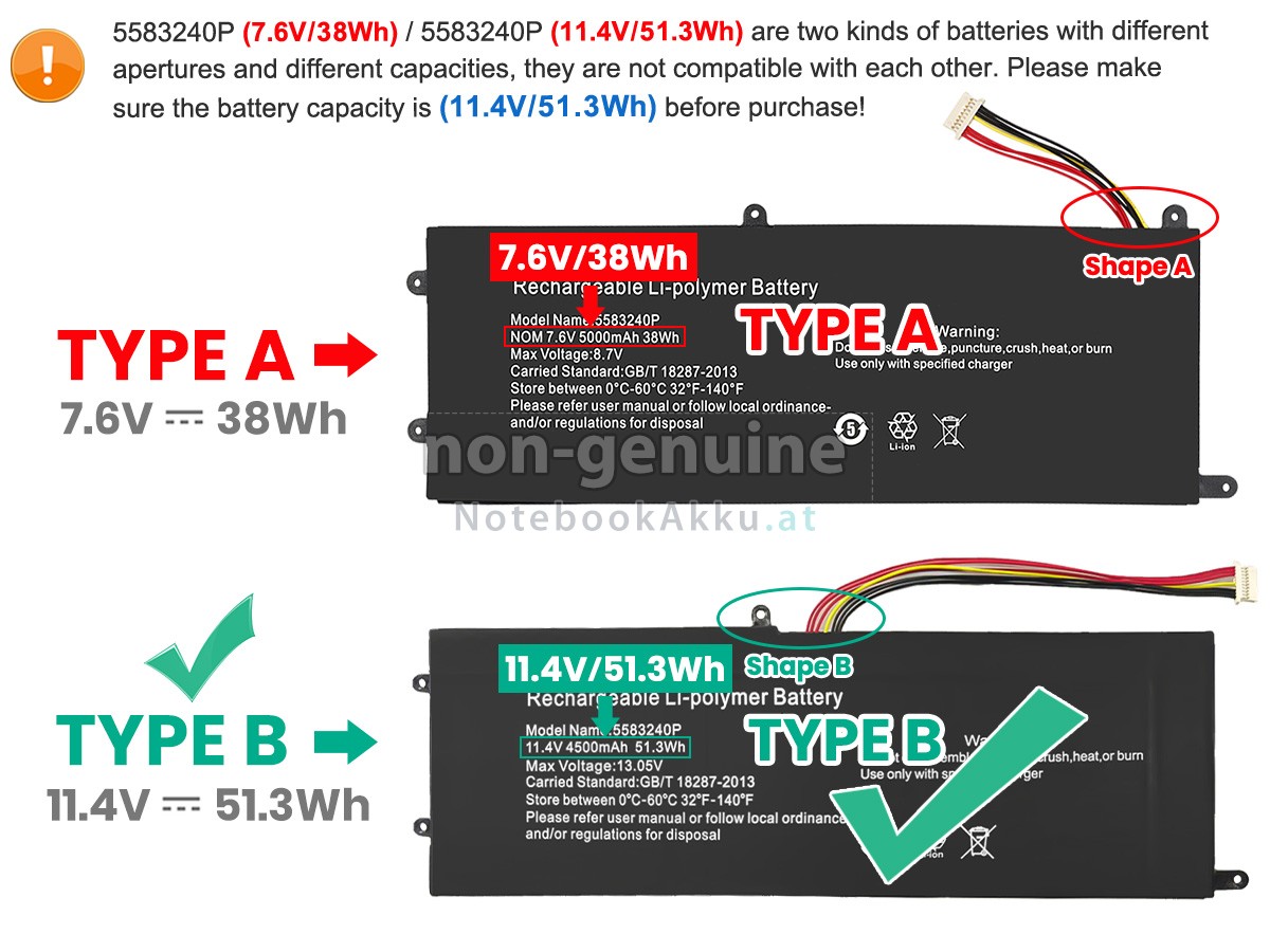Please open the computer and check the battery appearance and parameters is【7.6V, 38Wh】 before placing the order . - SKUNAT8719