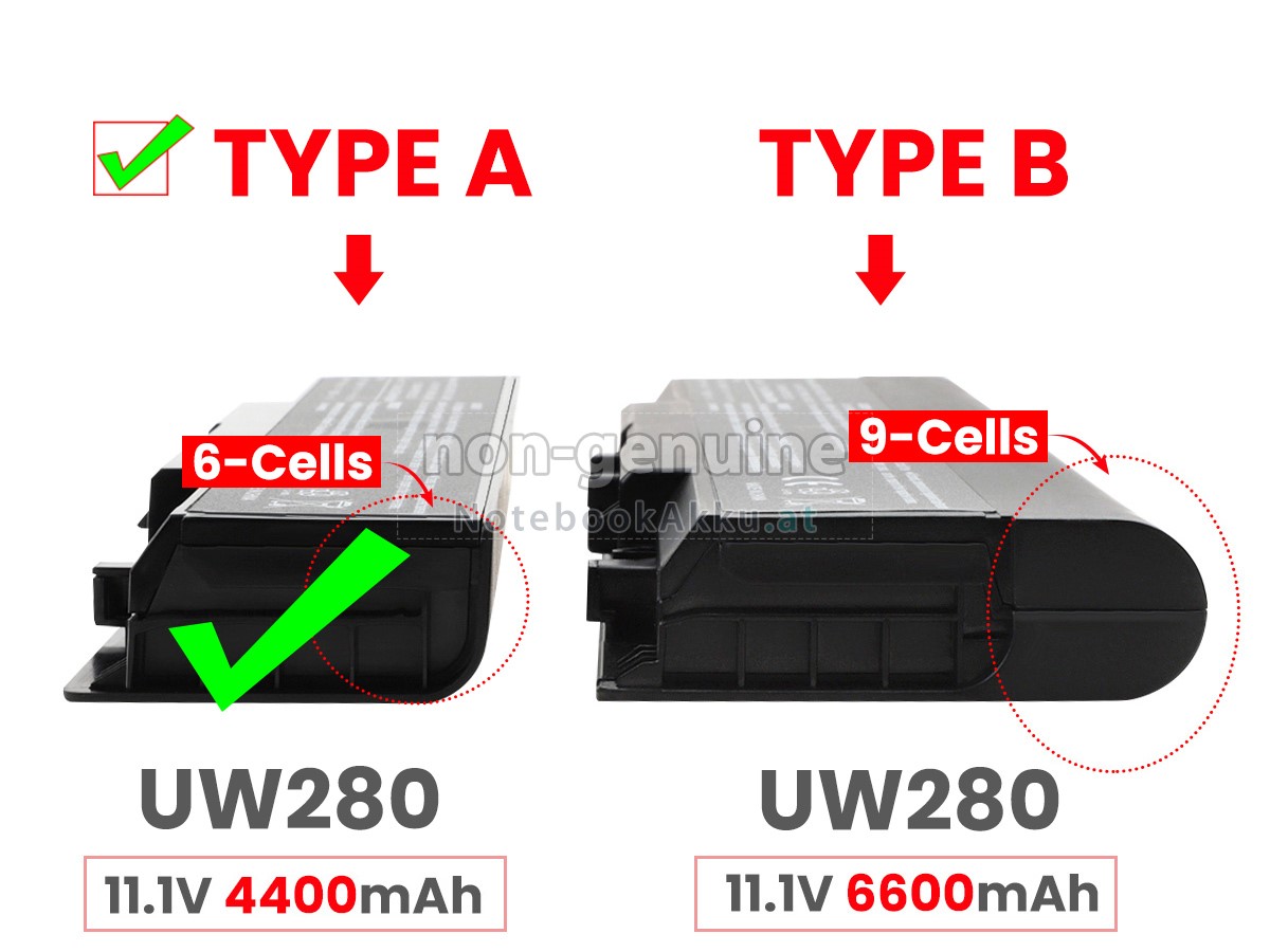 2 Vergleichen Sie die Spannung und das Fassungsvermögen Ihrer Akku für Dell FP269 mit unserer, dann schauen Sie das Bild und prüfen Sie, ob die Schittstelle und Form der neuen Akku gleich mit der alten Batterie ist.