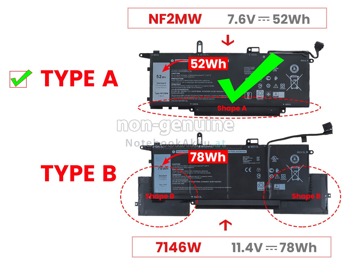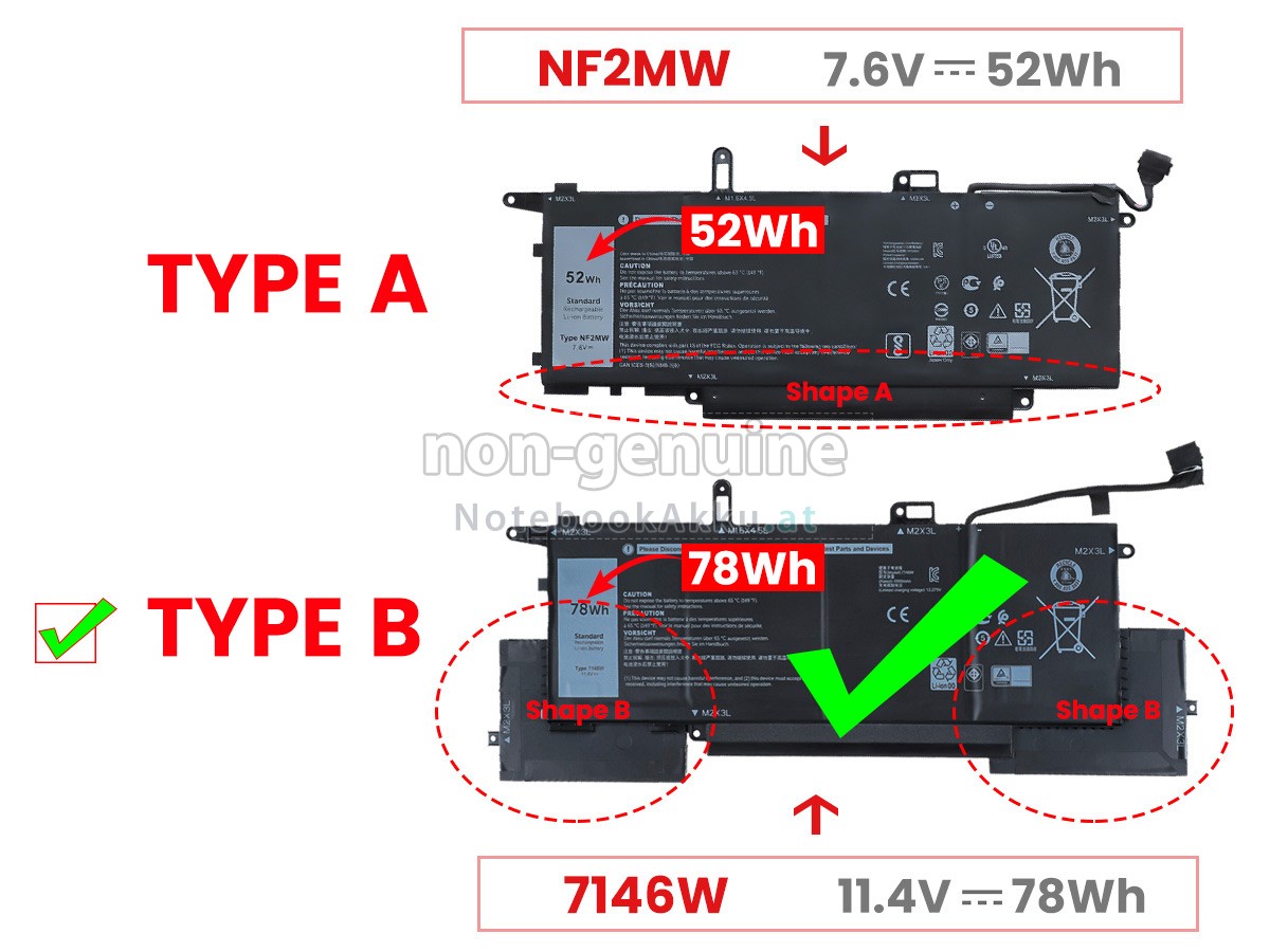 2 Vergleichen Sie die Spannung und das Fassungsvermögen Ihrer Akku für Dell Latitude 7400 2-IN-1 mit unserer, dann schauen Sie das Bild und prüfen Sie, ob die Schittstelle und Form der neuen Akku gleich mit der alten Batterie ist.