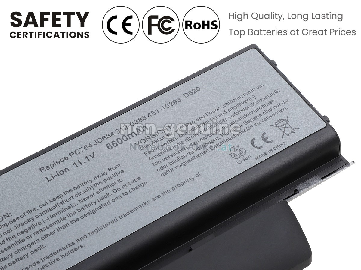 Ersatzakku für Dell Latitude D830N in der Webseite NotebookAkku.at zählt zu besten Wahlen. Wir bieten Ihnen mit günstigerem Preis die hochwertigere Akku des Notebooks. Dell Latitude D830N Akku, der aus hochwertigem Li-ion von Samsung, Panasonic und LG hergestellt wird, kann für mindestens 600 Zyklen aufgeladen / entladen werden, was Ihnen ein hervorragendes Erlebnis zur anhaltenden Verwendung bietet.