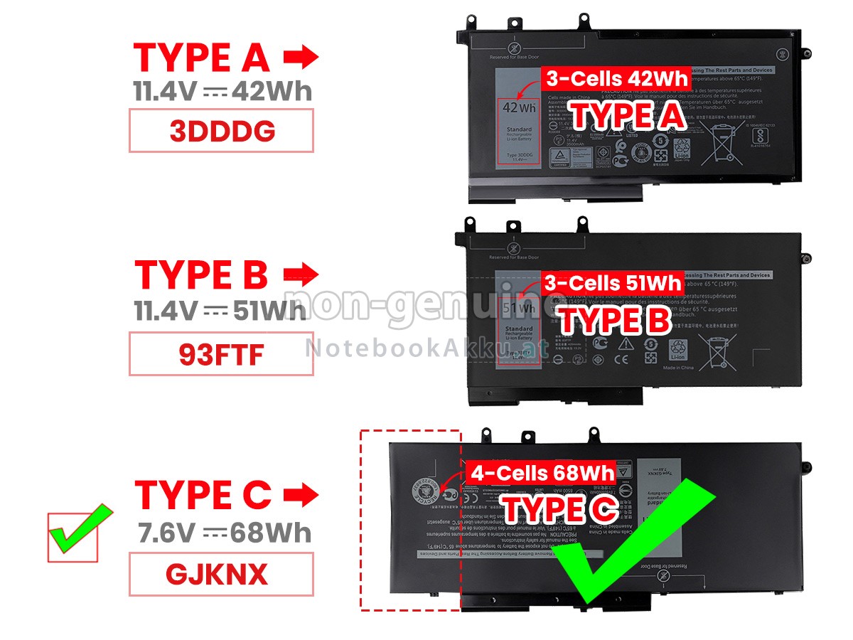 2 Vergleichen Sie die Spannung und das Fassungsvermögen Ihrer Akku für Dell Latitude E5288 mit unserer, dann schauen Sie das Bild und prüfen Sie, ob die Schittstelle und Form der neuen Akku gleich mit der alten Batterie ist.