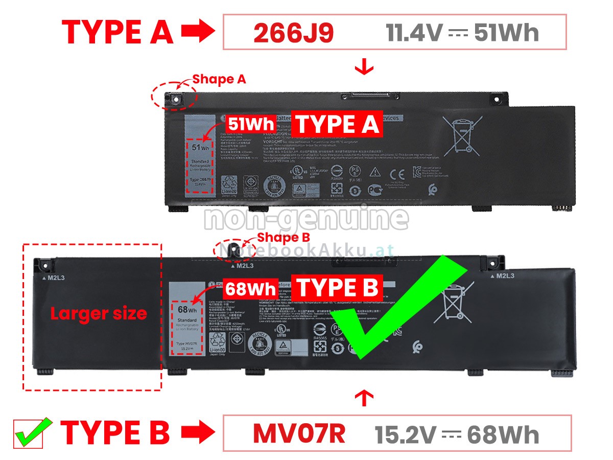 2 Vergleichen Sie die Spannung und das Fassungsvermögen Ihrer Akku für Dell MV07R mit unserer, dann schauen Sie das Bild und prüfen Sie, ob die Schittstelle und Form der neuen Akku gleich mit der alten Batterie ist.