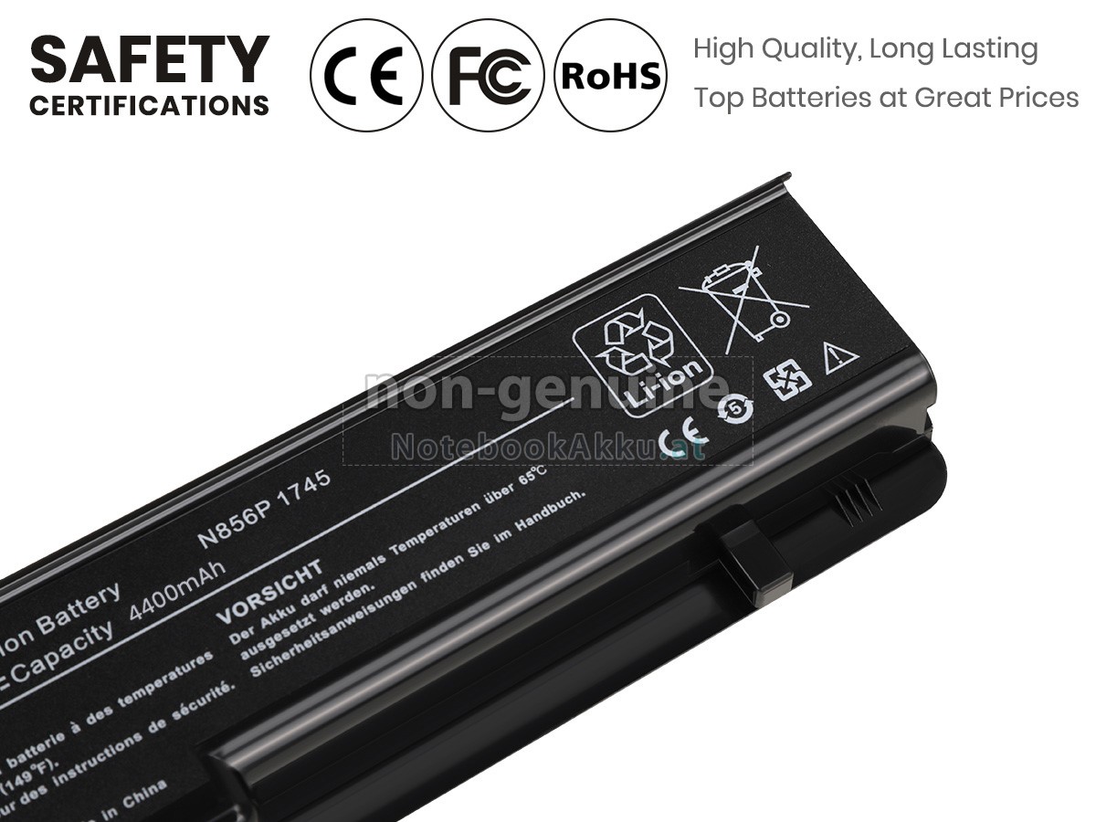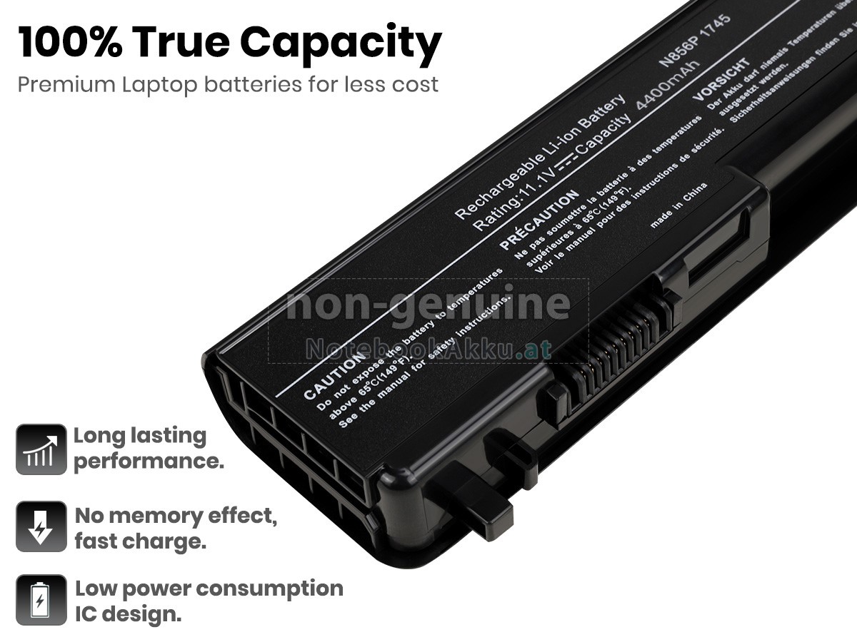 Ersatzakku für Dell N856P in der Webseite NotebookAkku.at zählt zu besten Wahlen. Wir bieten Ihnen mit günstigerem Preis die hochwertigere Akku des Notebooks. Dell N856P Akku, der aus hochwertigem Li-ion von Samsung, Panasonic und LG hergestellt wird, kann für mindestens 600 Zyklen aufgeladen / entladen werden, was Ihnen ein hervorragendes Erlebnis zur anhaltenden Verwendung bietet.