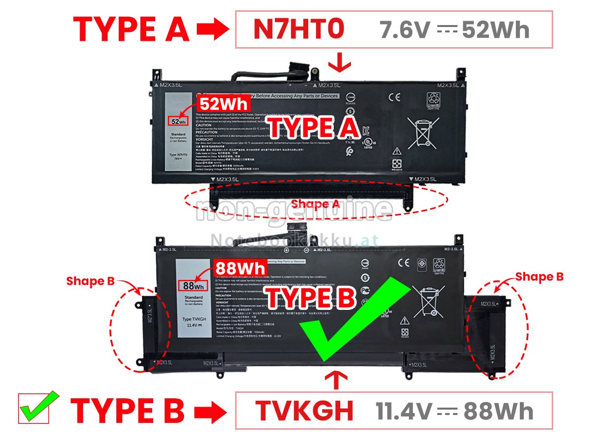 2 Vergleichen Sie die Spannung und das Fassungsvermögen Ihrer Akku für Dell P94F mit unserer, dann schauen Sie das Bild und prüfen Sie, ob die Schittstelle und Form der neuen Akku gleich mit der alten Batterie ist.