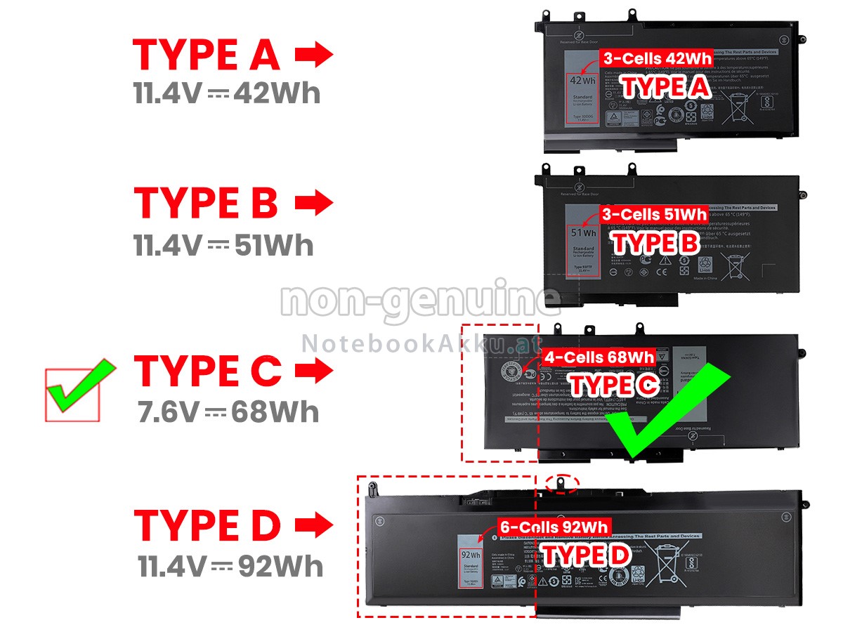 2 Vergleichen Sie die Spannung und das Fassungsvermögen Ihrer Akku für Dell Precision M3520 mit unserer, dann schauen Sie das Bild und prüfen Sie, ob die Schittstelle und Form der neuen Akku gleich mit der alten Batterie ist.