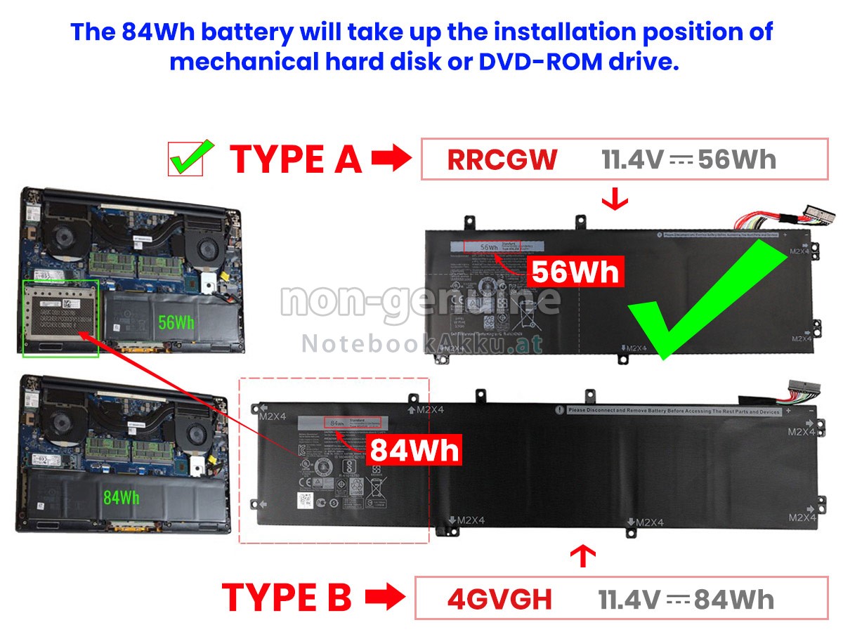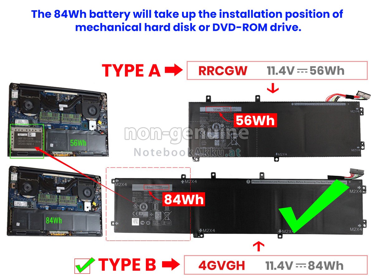 This is a high capacity(84Wh) battery,it's longer than the standard 56Wh battery, and it will take up the installation position of mechanical hard disk or DVD-ROM drive. You can use the 84Wh battery unless your laptop not installed the mechanical hard disk or DVD-ROM, otherwise please use the 56Wh battery.