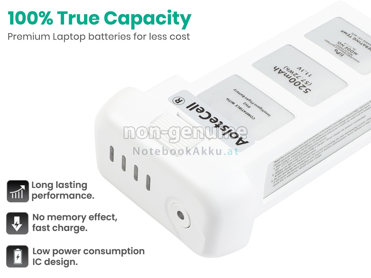 Ersatzakku für DJI 733496-5200MAH-11.1V in der Webseite NotebookAkku.at zählt zu besten Wahlen. Wir bieten Ihnen mit günstigerem Preis die hochwertigere Akku. DJI 733496-5200MAH-11.1V Akku, der aus hochwertigem Li-ion von Samsung, Panasonic und LG hergestellt wird, kann für mindestens 600 Zyklen aufgeladen / entladen werden, was Ihnen ein hervorragendes Erlebnis zur anhaltenden Verwendung bietet.