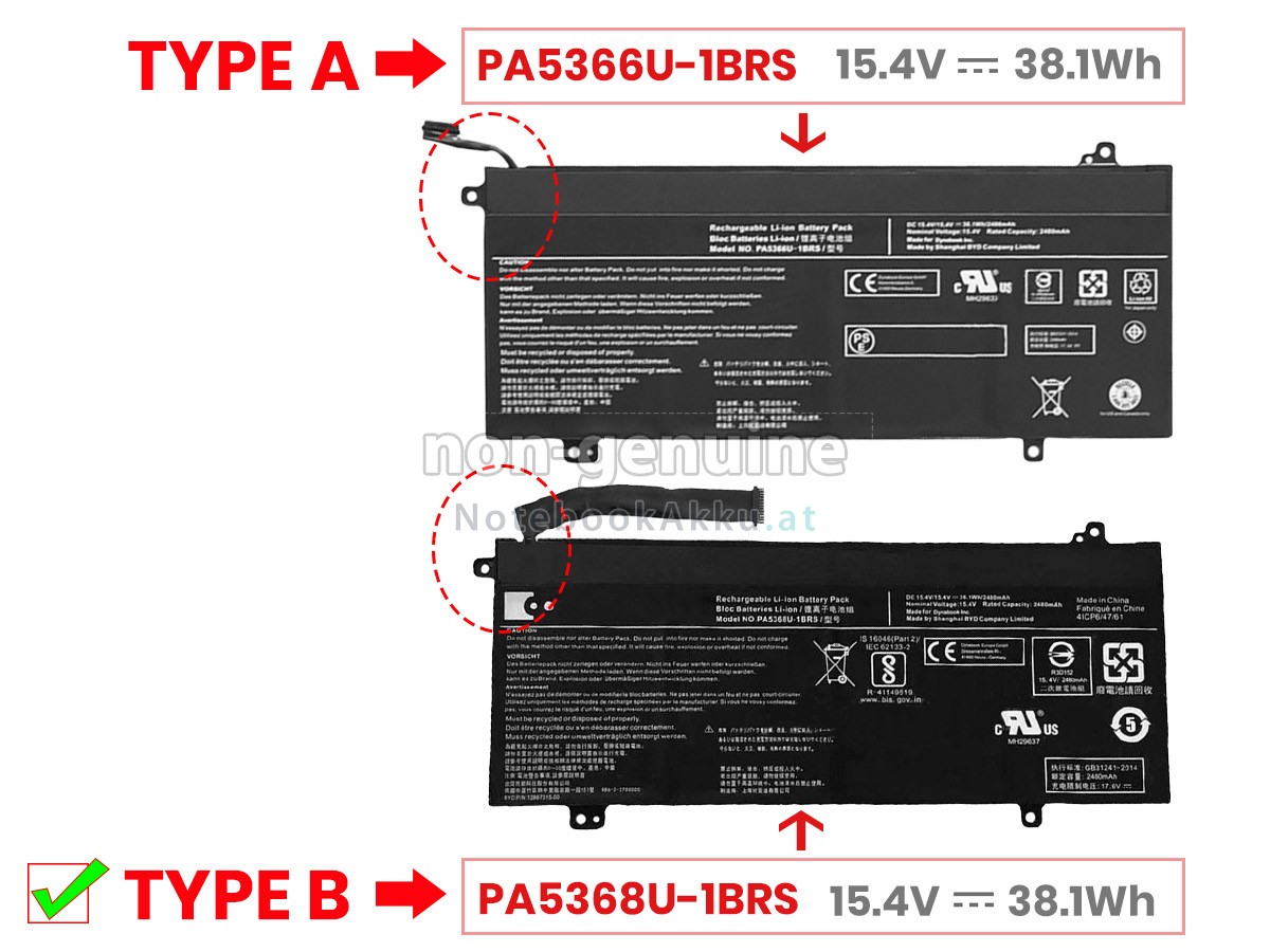 2 Vergleichen Sie die Spannung und das Fassungsvermögen Ihrer Akku für Dynabook SATELLITE PRO L40-G mit unserer, dann schauen Sie das Bild und prüfen Sie, ob die Schittstelle und Form der neuen Akku gleich mit der alten Batterie ist.