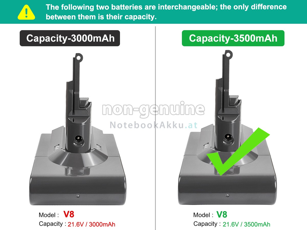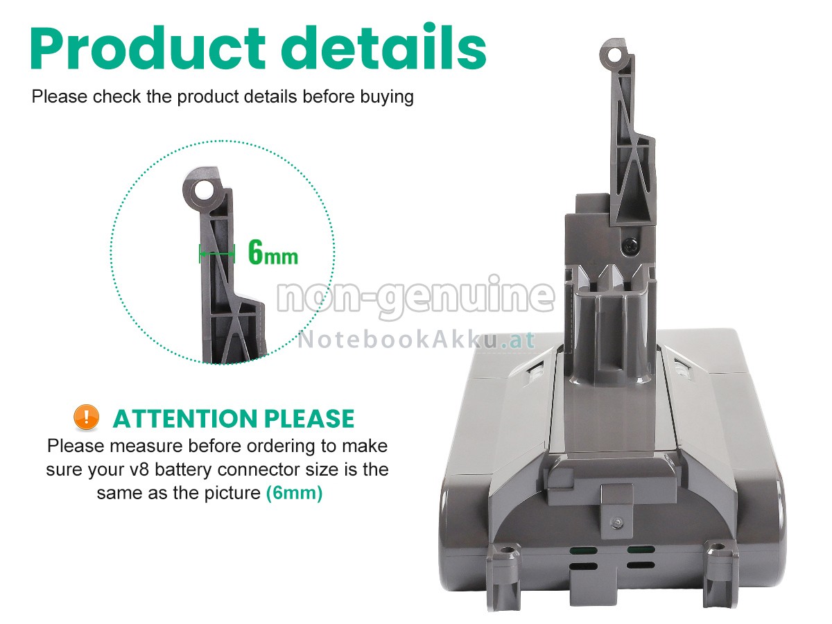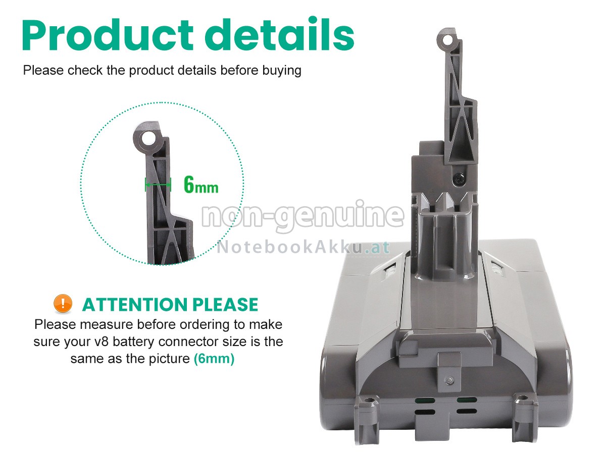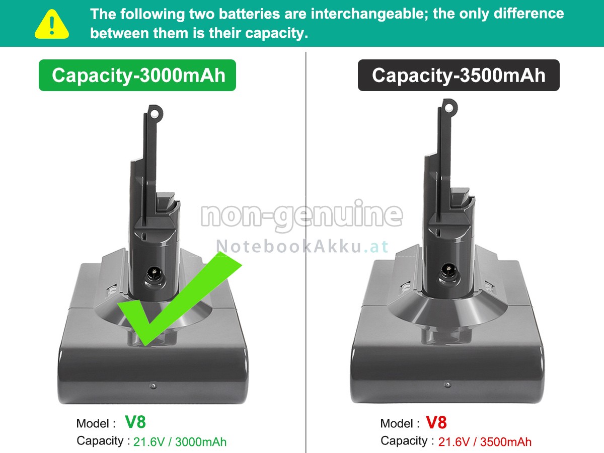 2 Vergleichen Sie die Spannung und das Fassungsvermögen Ihrer Akku für Dyson 218895-0121 mit unserer, dann schauen Sie das Bild und prüfen Sie, ob die Schittstelle und Form der neuen Akku gleich mit der alten Batterie ist.