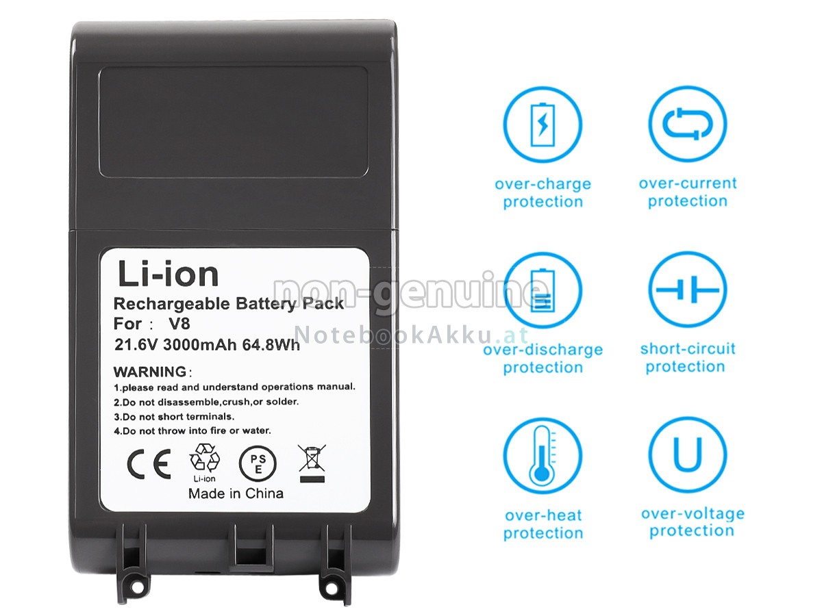 Ersatzakku für Dyson 218895-0121 in der Webseite NotebookAkku.at zählt zu besten Wahlen. Wir bieten Ihnen mit günstigerem Preis die hochwertigere Akku des Staubsauger. Dyson 218895-0121 Akku, der aus hochwertigem Li-ion von Samsung, Panasonic und LG hergestellt wird, kann für mindestens 600 Zyklen aufgeladen / entladen werden, was Ihnen ein hervorragendes Erlebnis zur anhaltenden Verwendung bietet.