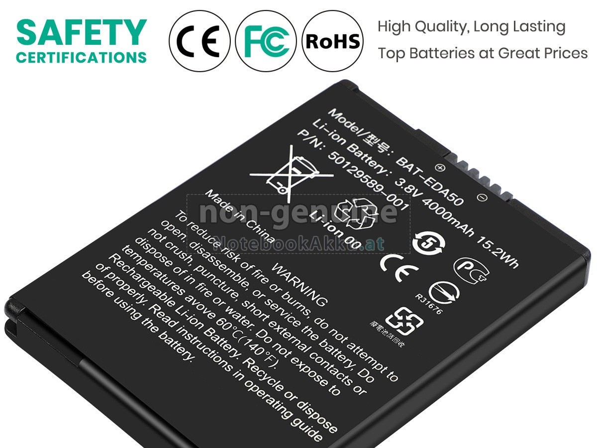 Ersatzakku für Honeywell EDA51K-1 in der Webseite NotebookAkku.at zählt zu besten Wahlen. Wir bieten Ihnen mit günstigerem Preis die hochwertigere Akku. Honeywell EDA51K-1 Akku, der aus hochwertigem Li-ion von Samsung, Panasonic und LG hergestellt wird, kann für mindestens 600 Zyklen aufgeladen / entladen werden, was Ihnen ein hervorragendes Erlebnis zur anhaltenden Verwendung bietet.